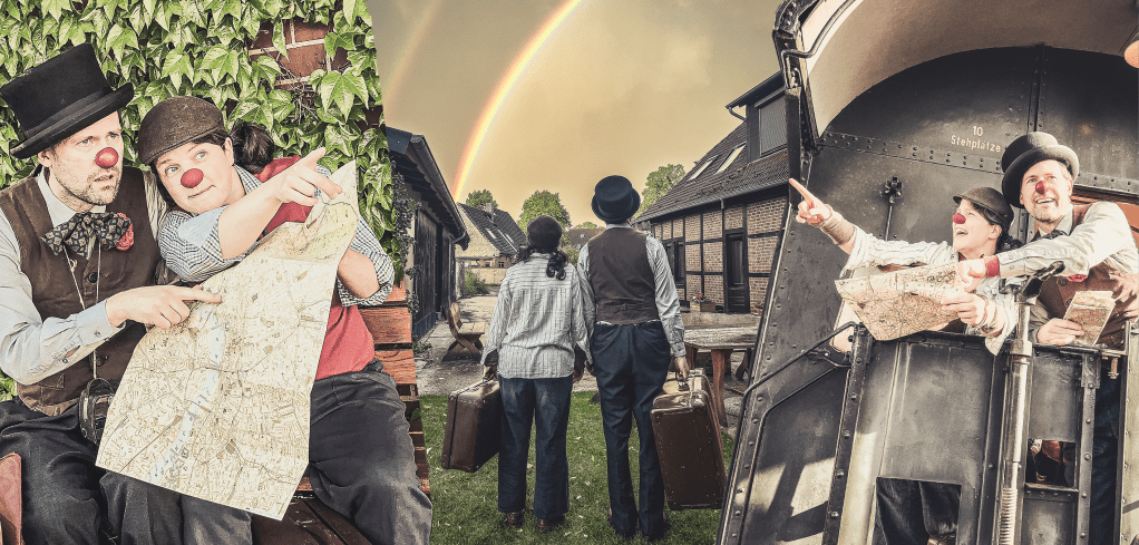 Von Nord nach Süd und von Ost nach West – von den höchsten Gipfeln bis zu den entlegensten Orten: Die beiden Clowns Oskar und Jule sind gerne unterwegs! Staunend entdecken sie Orte, treffen mit Neugier auf Menschen, lieben die Poesie im Augenblick und erzählen gerne Geschichten – auf der Bühne und unterwegs.