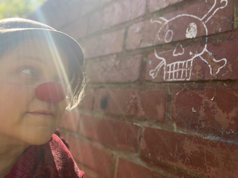 Da mein Clown Jule überall hinreisen mag, wo Menschen sind, warum sollte sie nicht auch mal staunend einen Friedhof erkunden. Im Verständnis ein poetischer Clown zu sein – ein Charakterclown, der nicht vorgefertigte Nummern abspielen möchte, sondern dem Impuls im Jetzt folgt, sich vom Kontakt im Augenblick finden lässt, keine Sprache zur Kommunikation braucht und den Raum bewusst einbezieht – scheint ein Friedhof für einen Besuch durchaus passend.